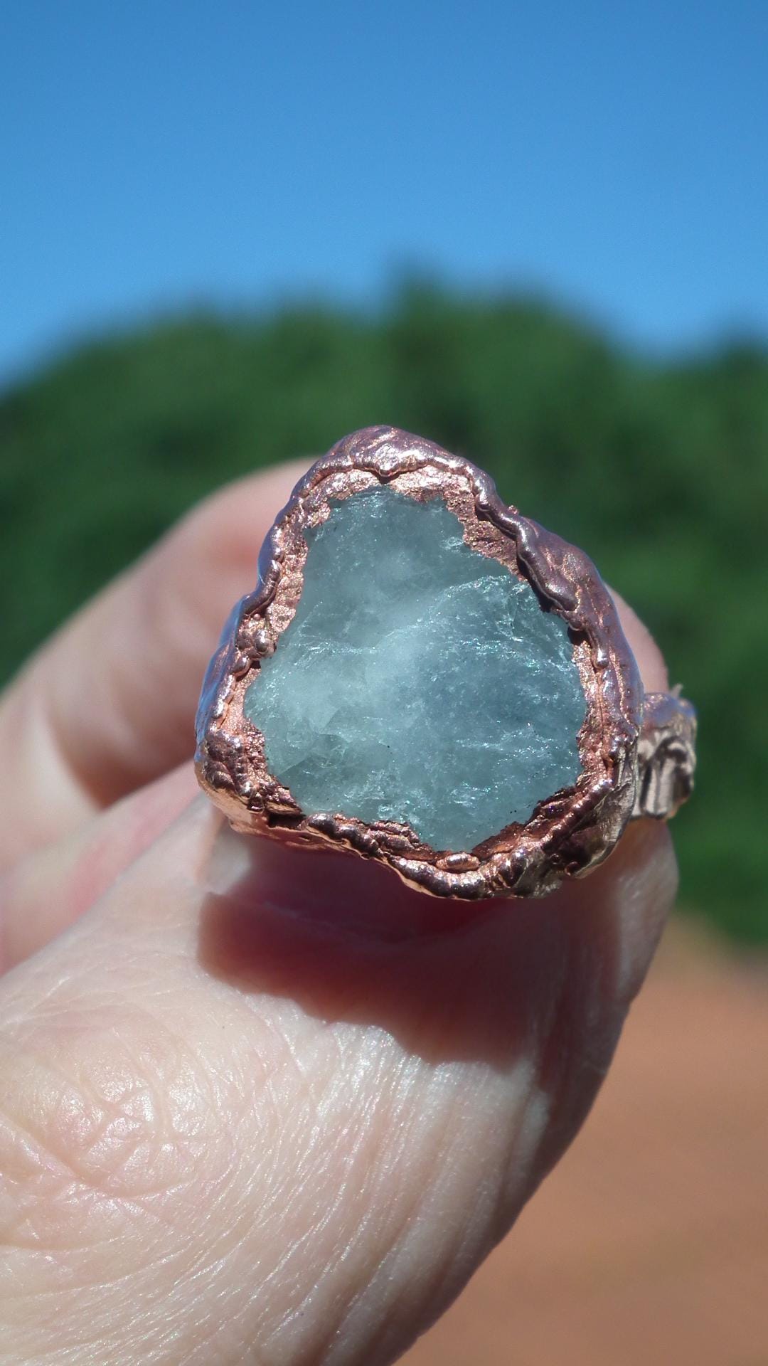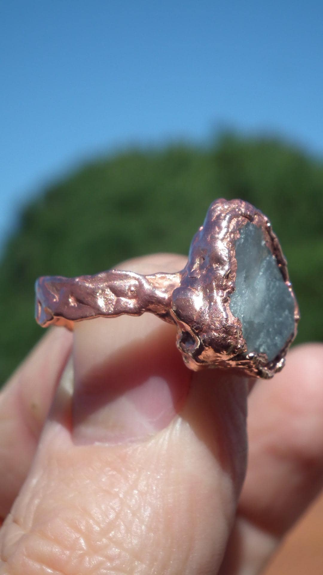 Adorn your finger with this stunning Celestite ring, expertly crafted with Electroformed copper!