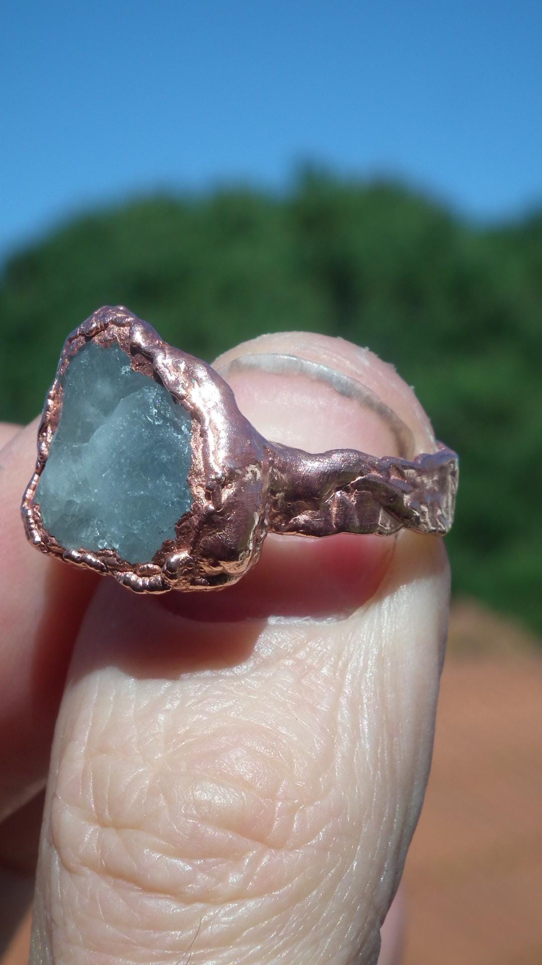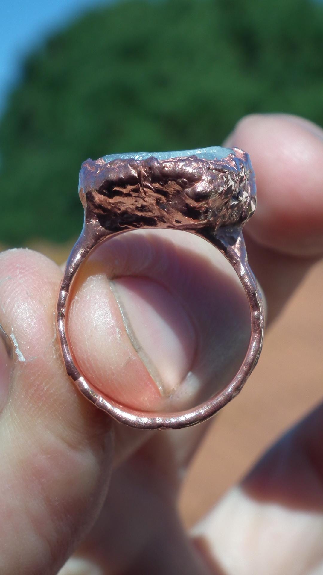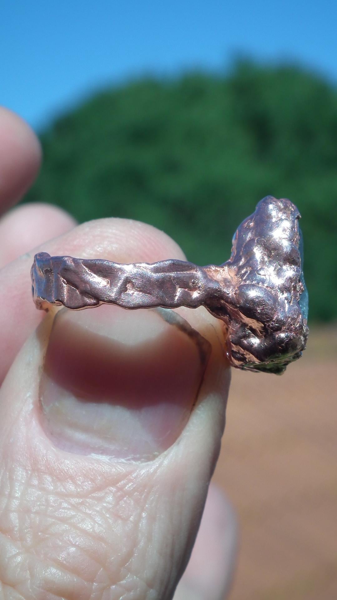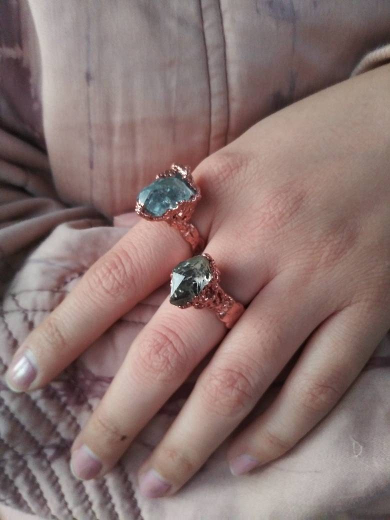 This Electroformed copper Celestite ring is one of a kind and unique in all ways, you will recieve the Electroformed copper Celestite ring from the picture.