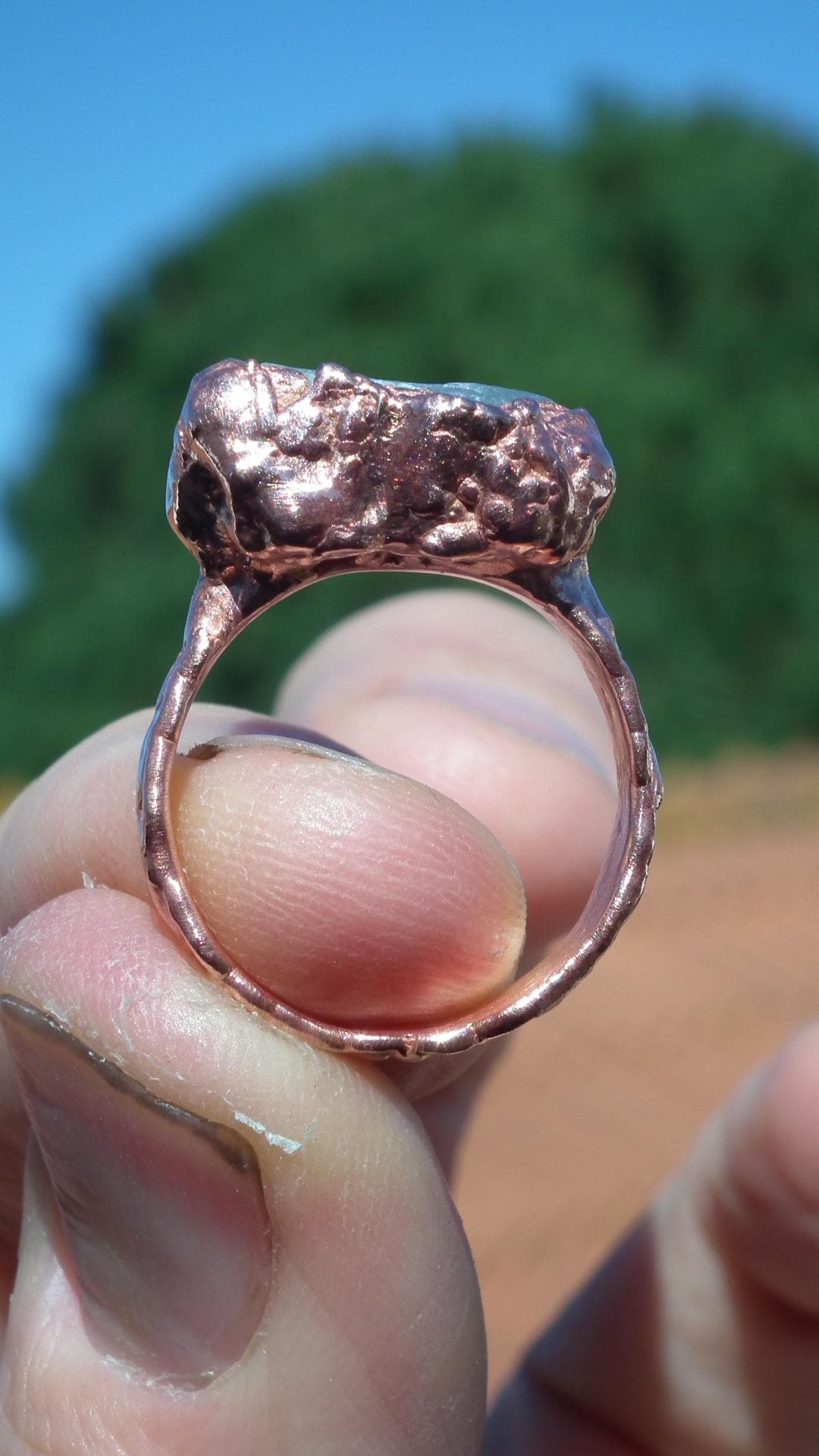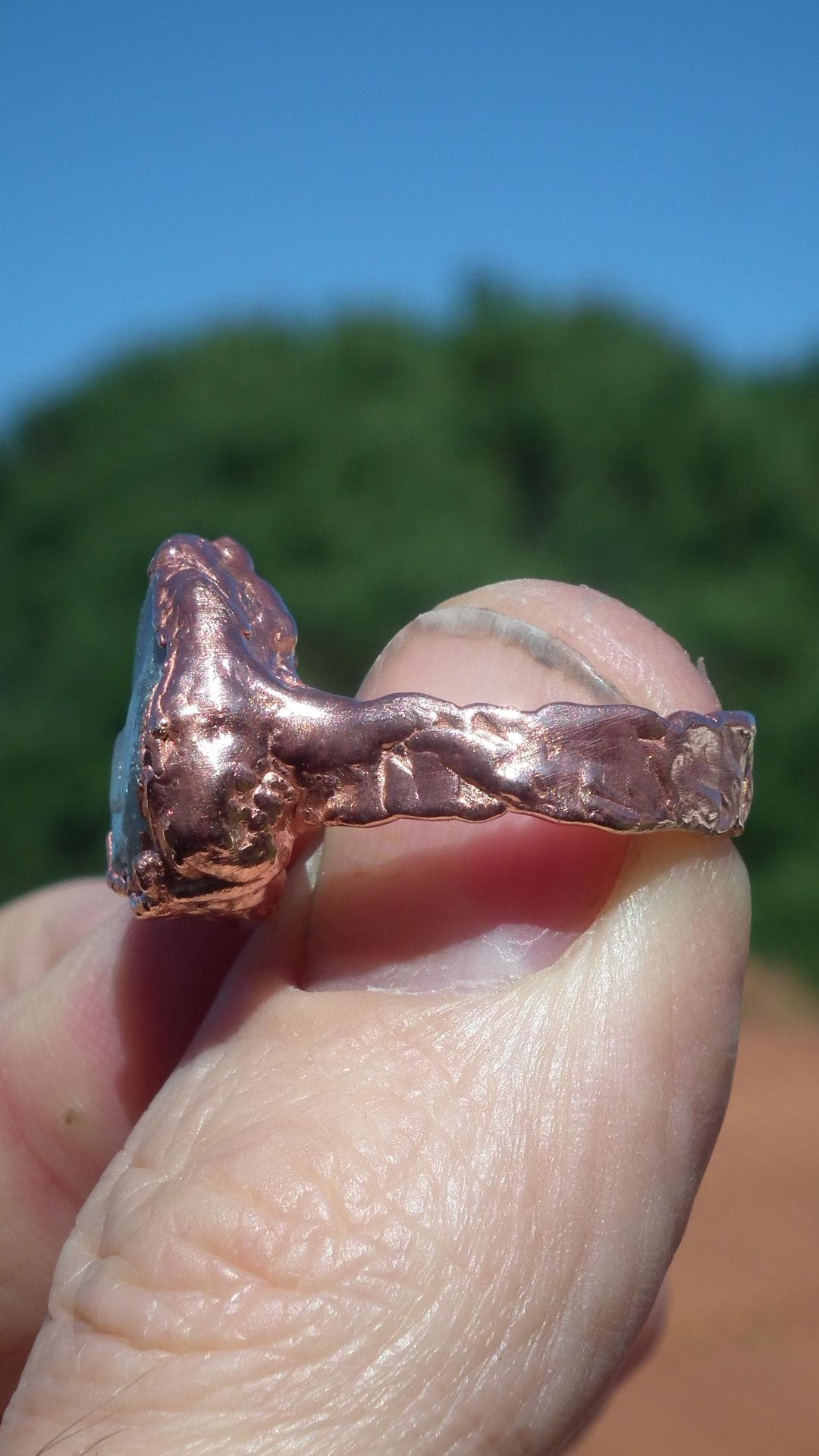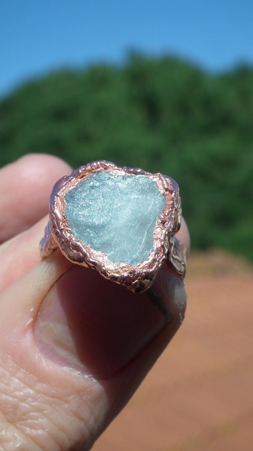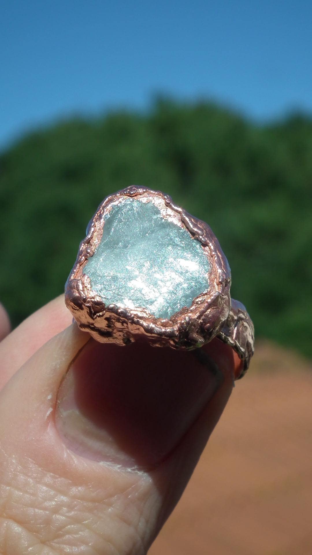 This Electroformed copper Celestite ring is one of a kind and unique in all ways, you will recieve the Electroformed copper Celestite ring from the picture.