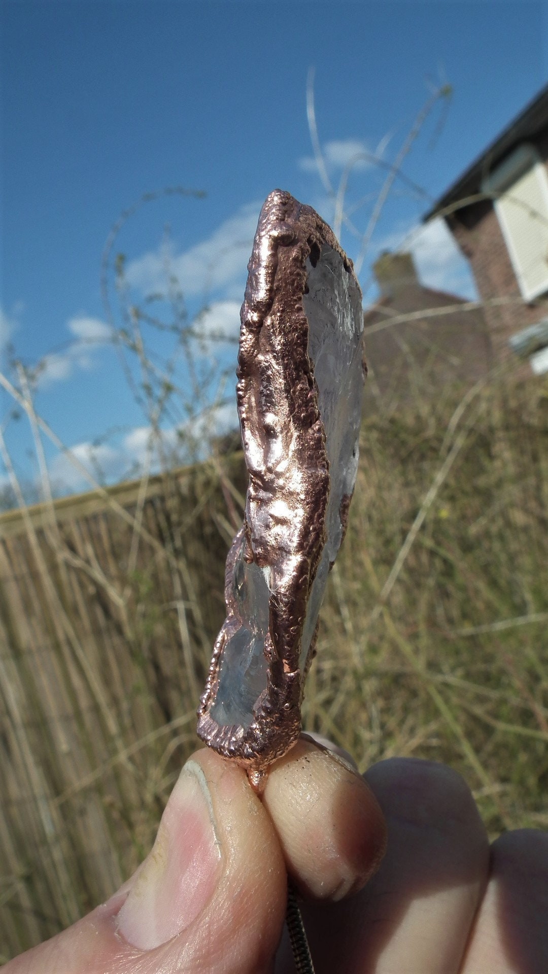 This Electroformed copper Rose quartz pendant is one of a kind and unique in all ways, you will recieve the Electroformed Rose quartz pendant from the picture.