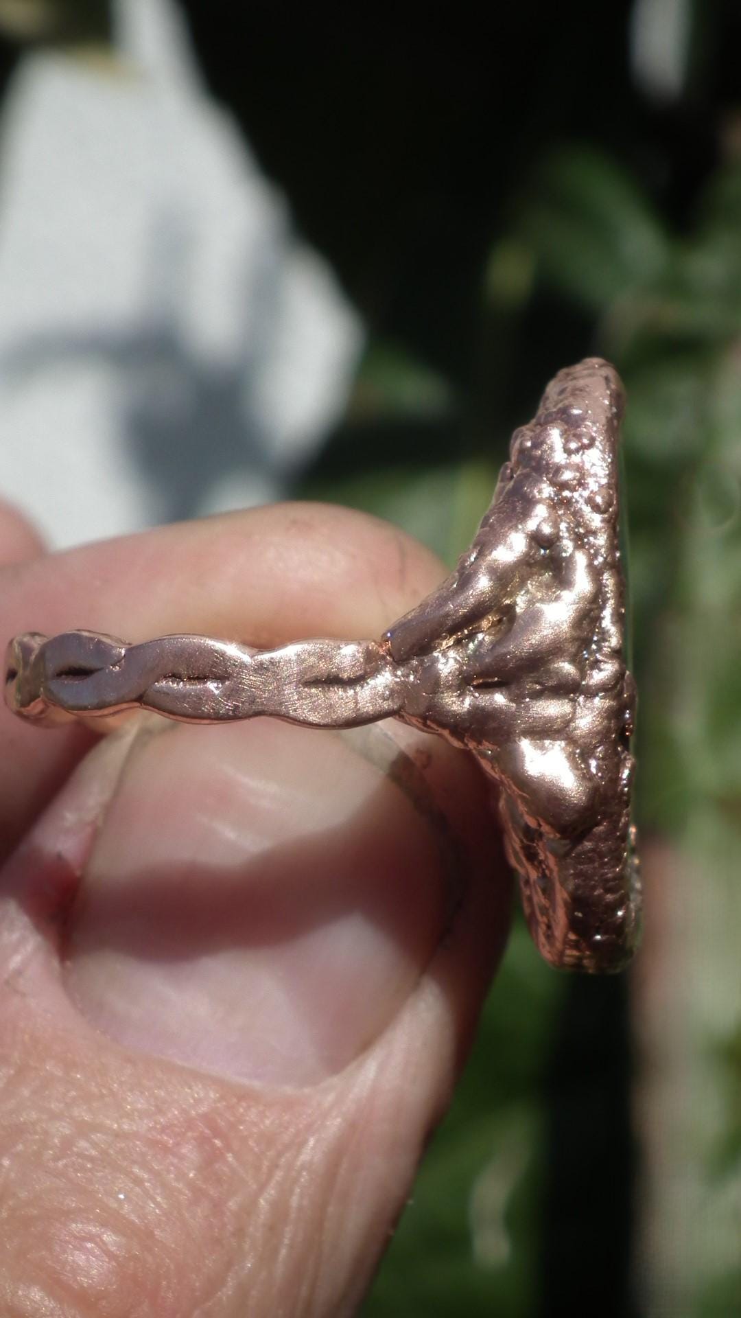 This Electroformed copper Malachite ring is one of a kind and unique in all ways, you will recieve the Electroformed copper Malachite ring from the picture.