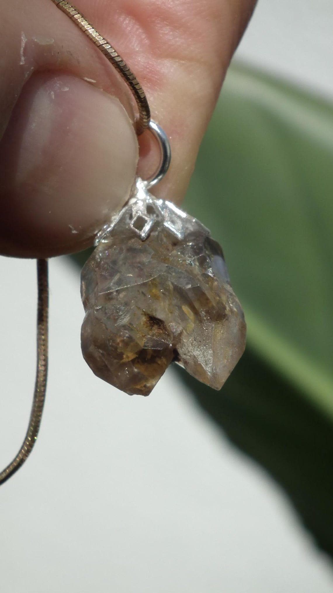 Uv reactive crystal pendant // Petroleum quartz // Terminated quartz