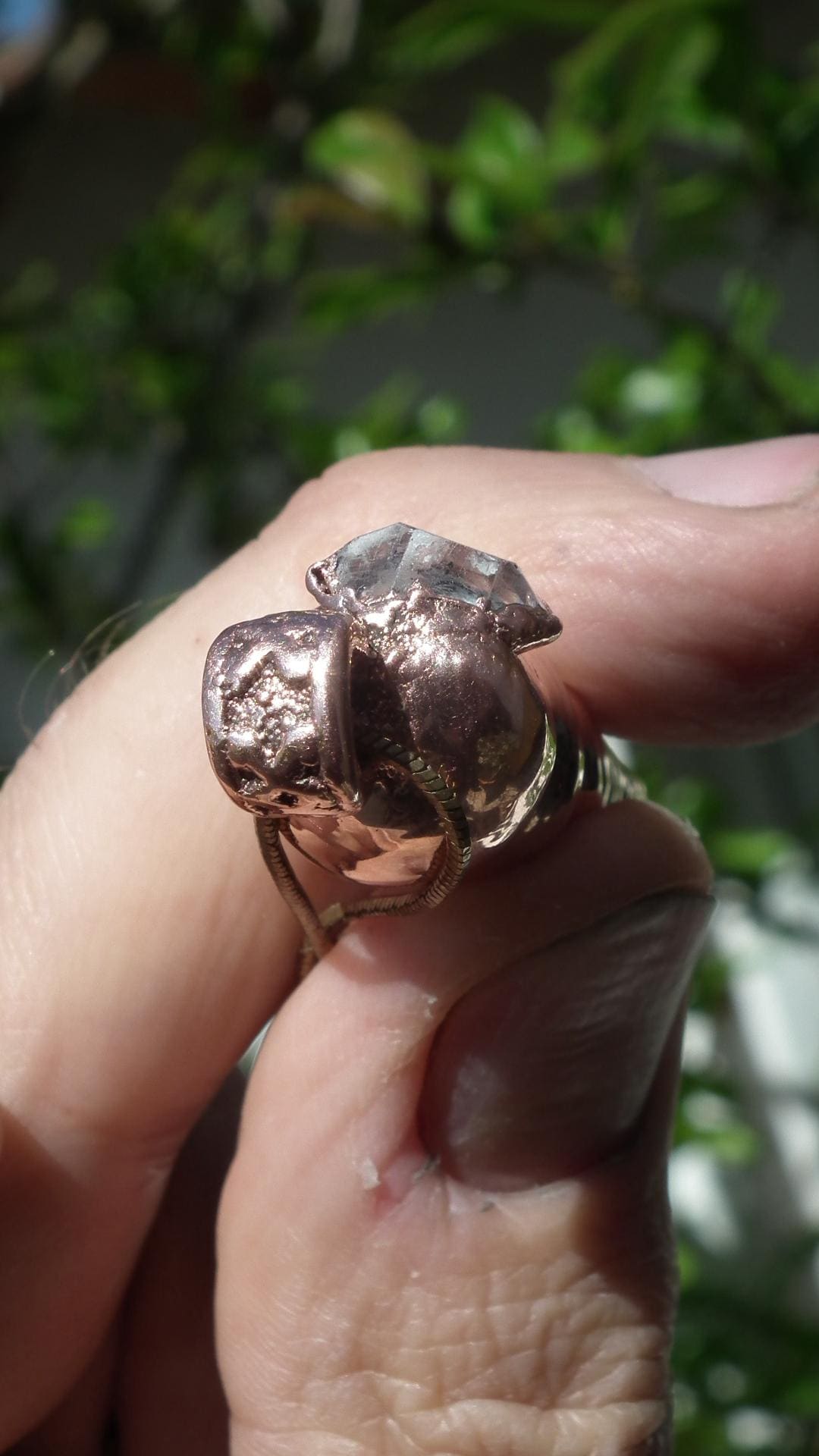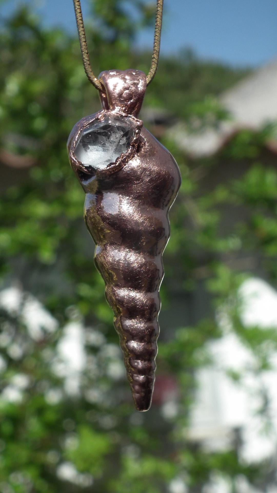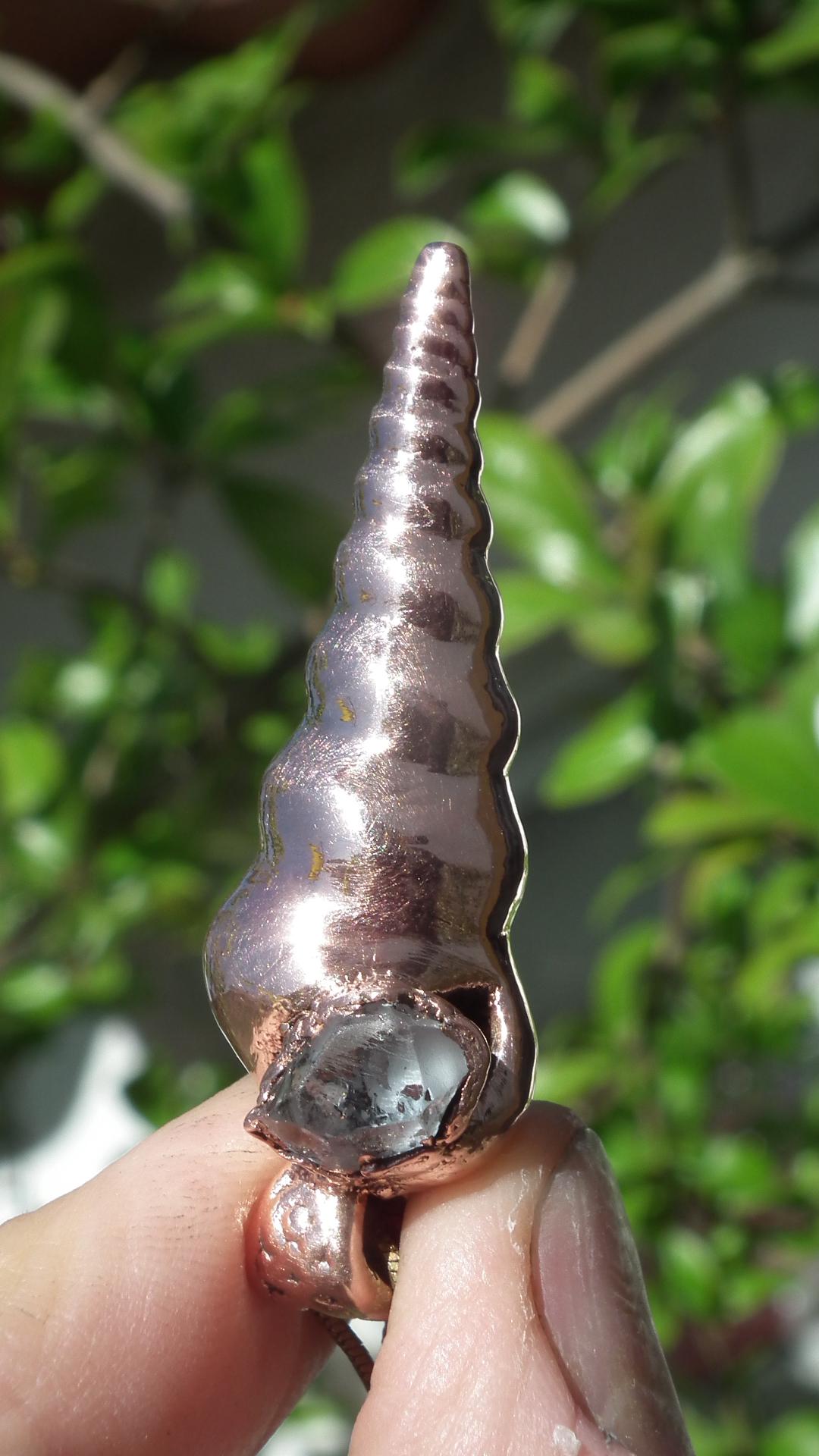 I has no idea just how beautiful this Herkimer diamond pendant was until I opened the package - what a stunning, breathtaking piece of jewellery! Andre is an absolute master at his craft - understanding each gemstone or mineral, its natural shape and sense, and its relationship with other stones and to the setting of electroformed copper. This pendant is so much more than a fine piece of jewellery, there is an unparalleled artistry here, as well. Thank you so much, Andre!
