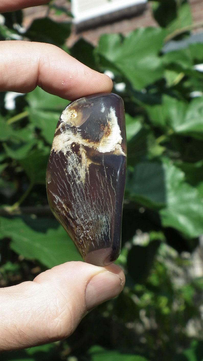 This Magnificent Palmpiece was Handcut out of a raw piece of Blue sumatra amber and polished into perfection to reveal all it's hidden colors and patterns.