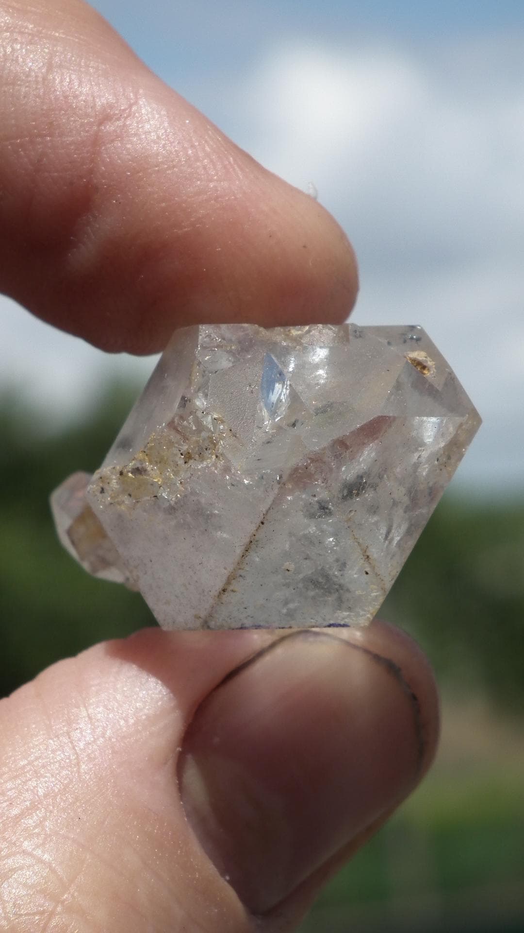 These crystals usually grow in or around water tables. They form in skeletal layers and then trap the water inside the crystal.