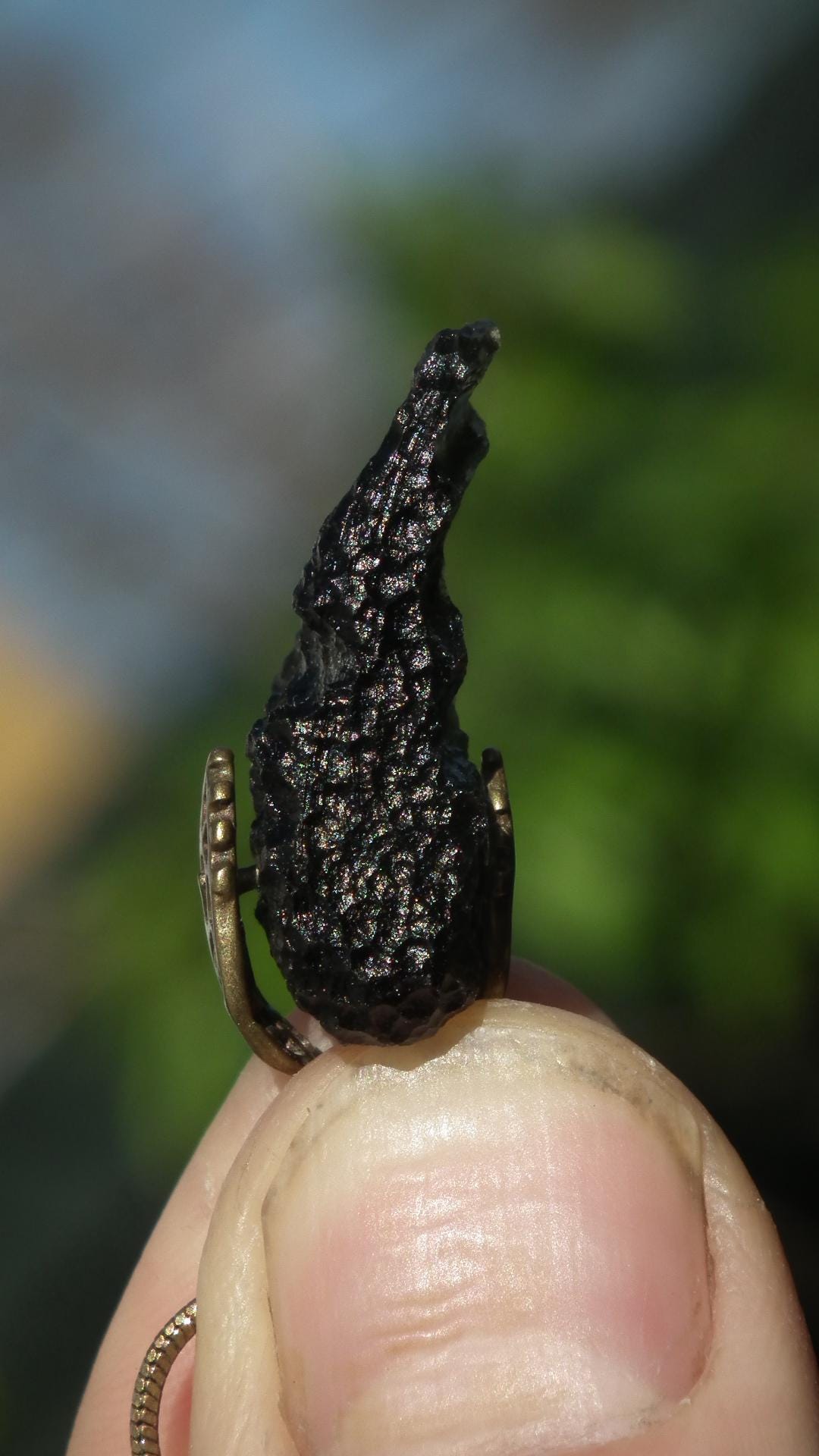 Moldavite pendant with bronze bail // With certificate