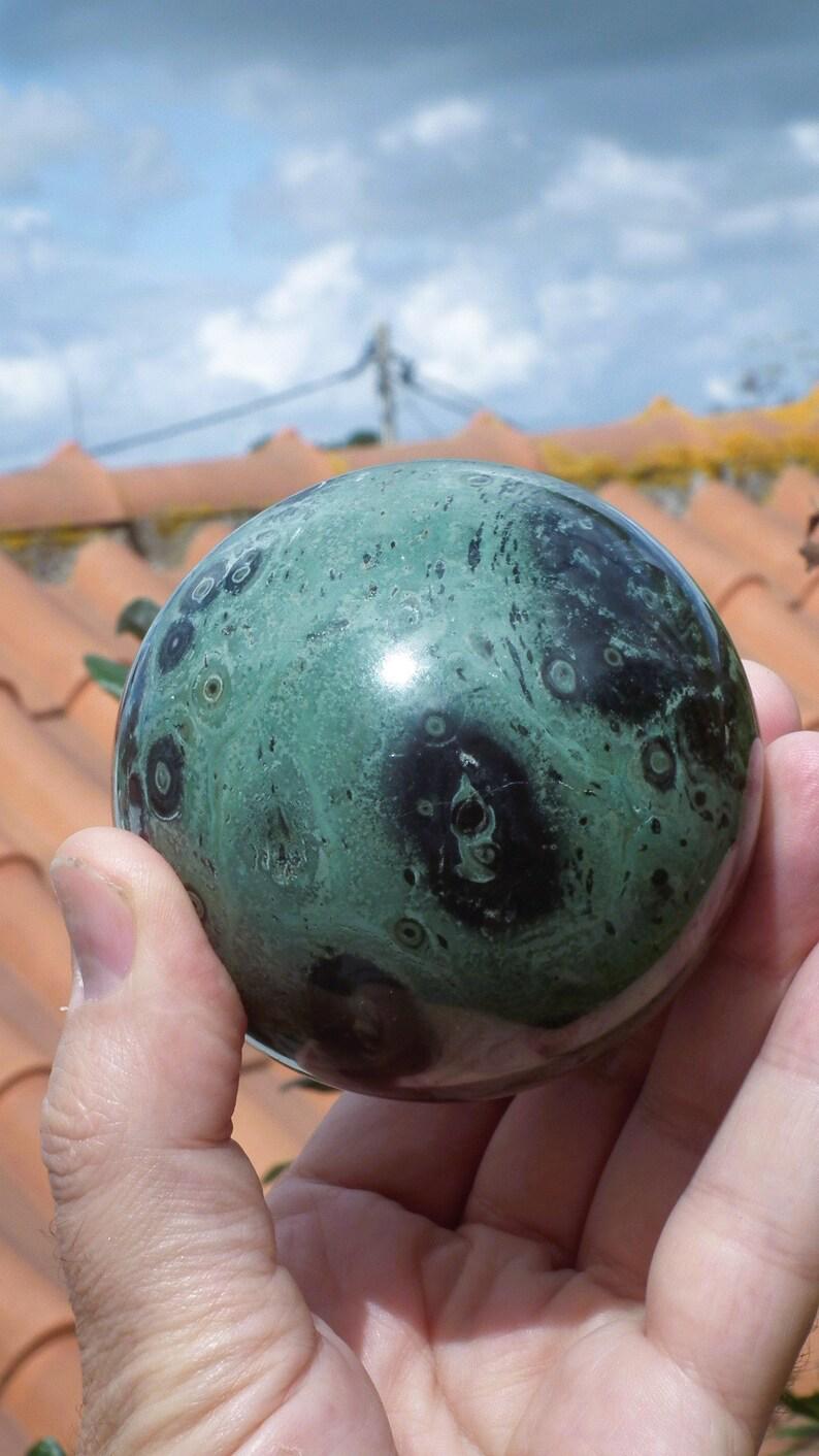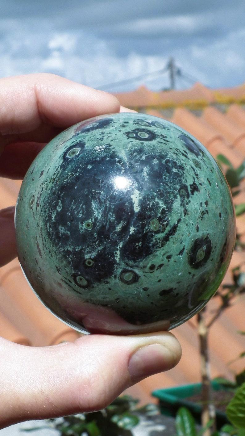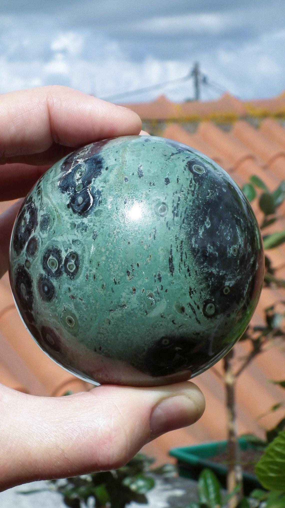 You will receive the exact sphere shown in the photos, The diameter is 7.8 cm / 3.07"