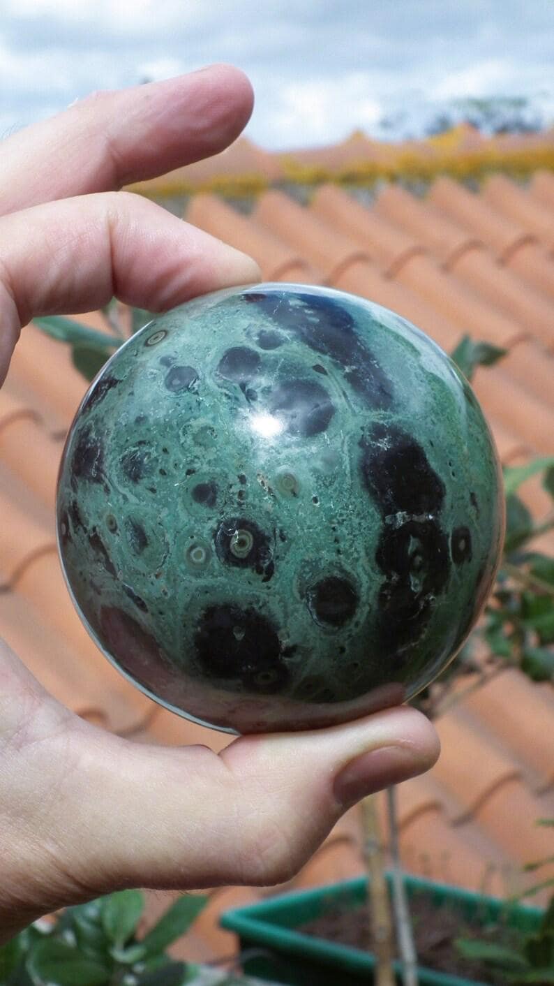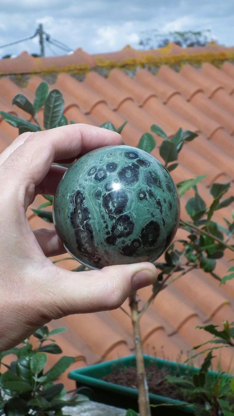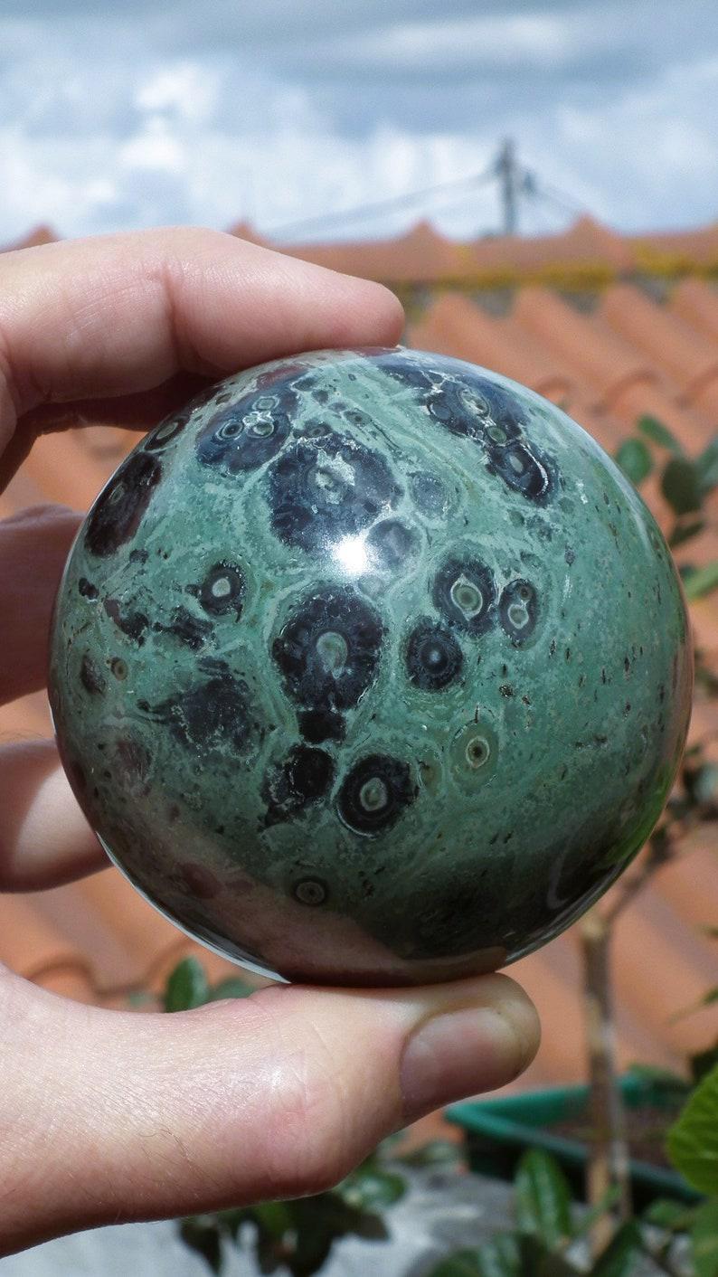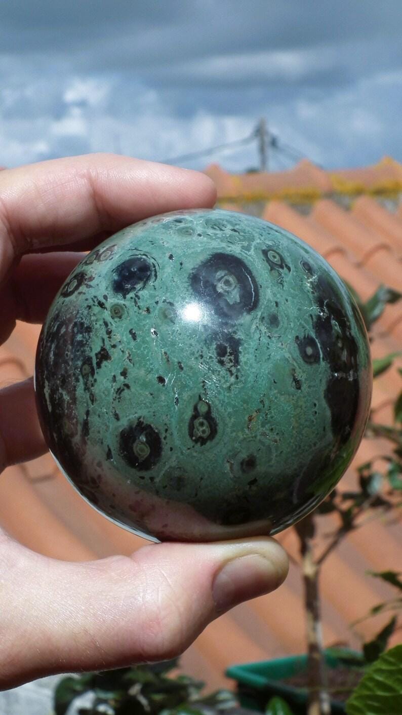You will receive the exact sphere shown in the photos, The diameter is 7.8 cm / 3.07"