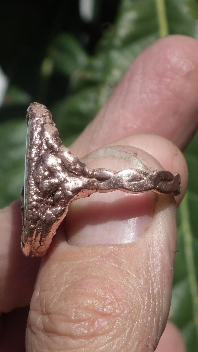 This Electroformed copper Malachite ring is one of a kind and unique in all ways, you will recieve the Electroformed copper Malachite ring from the picture.